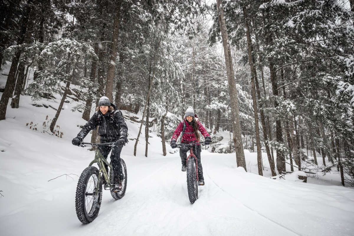 The Parc de la Gorge de Coaticook offers a total of 17 kilometres of fatbike trails, some exclusively reserved for this sport, while others are shared with snowshoe adepts. The trails vary from family and easy grades (11 km) to intermediate levels (5,5 km). Two fatbikes for adults are available for rentals.