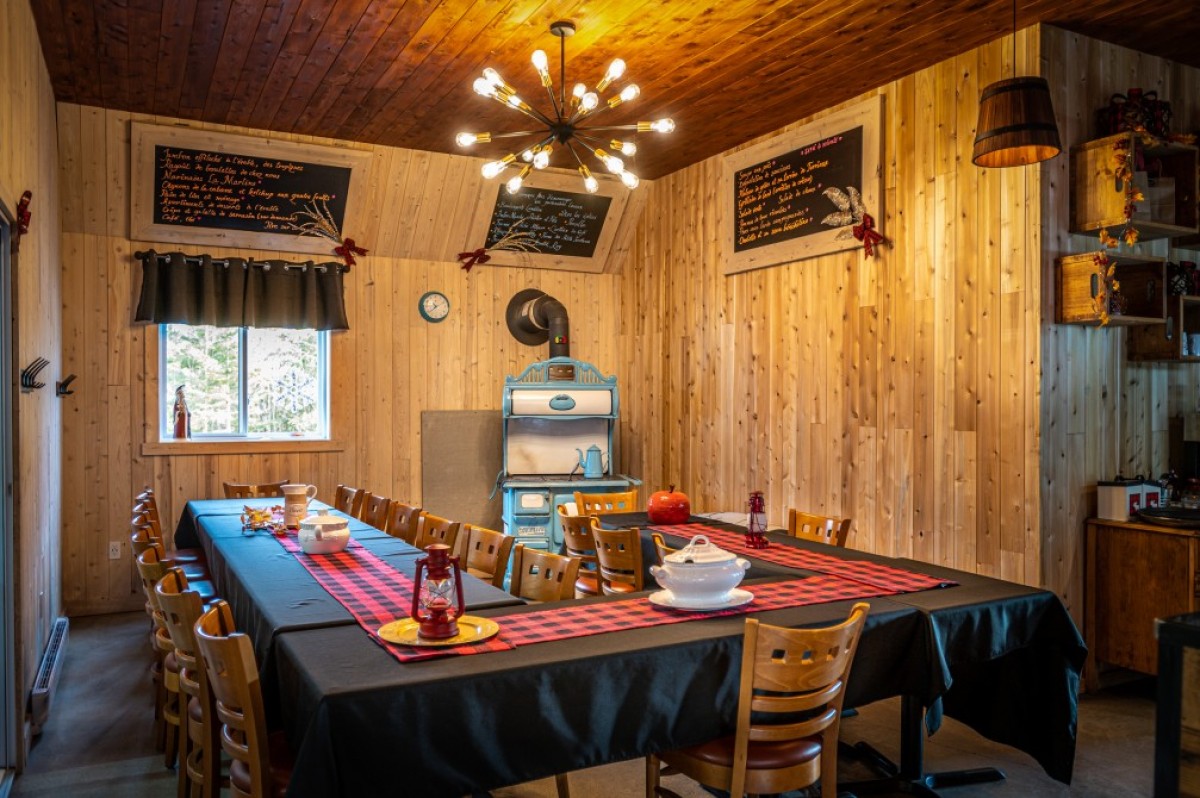 The dining room is small and warm, and welcome at most 28 persons. You will feel almost loike you were with family! Pea soup, pulled maple ham, grilled bacon, assortment of maple desserts, among others, will me offered at the Cabane à sucre et produits La Martine, in Saint-Romain. Meal boxes et many other delicious products are also available to take out.