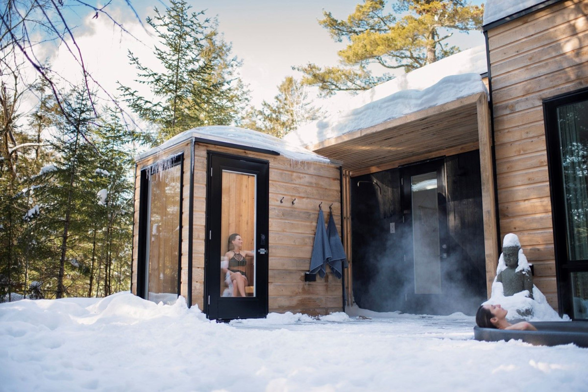 Located at the foot of Mount Chagnon, in Bolton-Est, this majestic 175-acre forest domain, with its three streams, offers 14 ecolodges built from A to Z with the forest’s noble resources. Here, you’ll be in perfect harmony with nature as you discover the wealth of wildlife and flora on the 12 kilometres of groomed trails you can access on foot or snowshoes (there’s an on-site rental service). If you’re hoping to go off the grid for a while, you’ll note there is no WIFI connection that will reach your ecolodge!