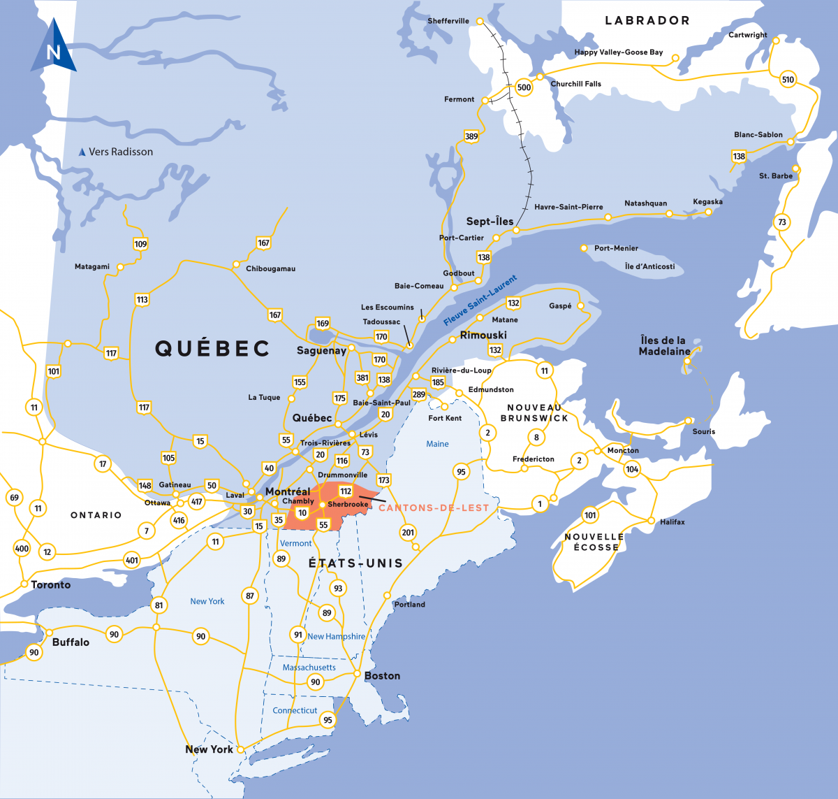 Located at an hour’s drive from Montréal, the Eastern Townships region shares its border with the American states of Vermont, New Hampshire and Maine.